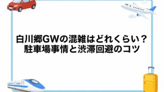 ゴールデンウィーク 白川郷GW2026の混雑はどれくらい?駐車場事情と渋滞回避のコツ 白川郷GW2026の混雑予想を解説!ピークは5月3日〜5日で駐車場待ち2時間超も。せせらぎ公園の料金改定情報や荘川IC迂回ルート、早朝・夕方の穴場時間帯をまとめました。 2026.03.22 ゴールデンウィーク